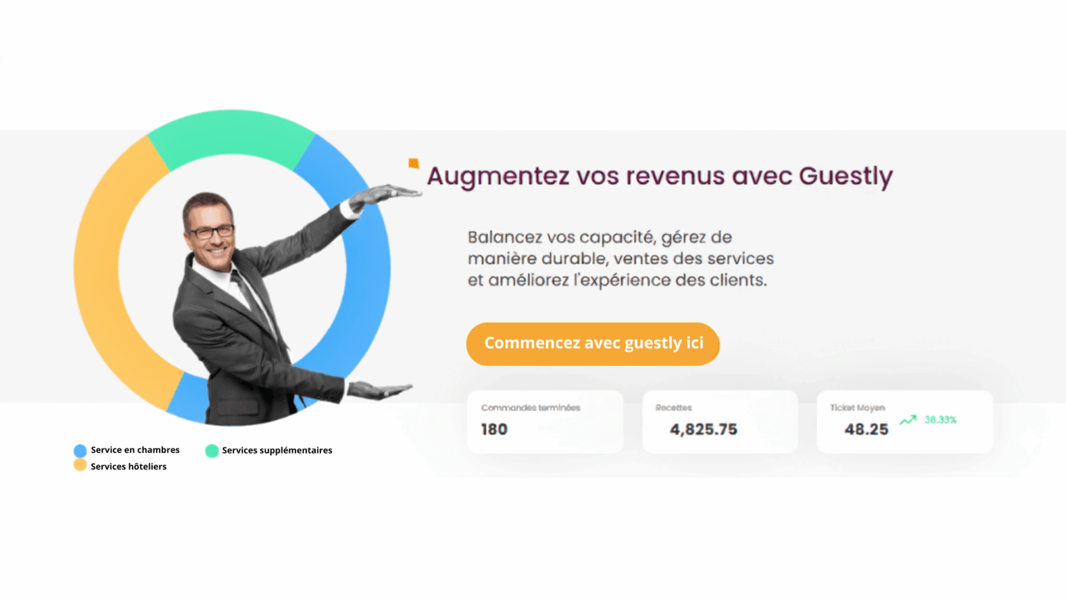 Guestly centralise toutes les informations clients et les contenus de l’établissement (que ce soit un restaurant, un centre de spa ou loisirs, un hôtel ou tout autre établissement) en un seul espace actualisable en temps réel, ce qui élimine les problèmes d’informations éparpillées ou obsolètes. Fini le coût et la logistique des impressions papier : les tarifs et supports sont modifiables instantanément depuis la plateforme, ce qui permet d’ajuster les prix et offres selon la demande pour maximiser les revenus.